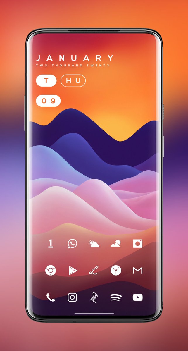 Flight (pro version) is a simple and minimalist icon pack with clean, flat white icons, matching wallpapers and includes clock, battery and weather widgets.